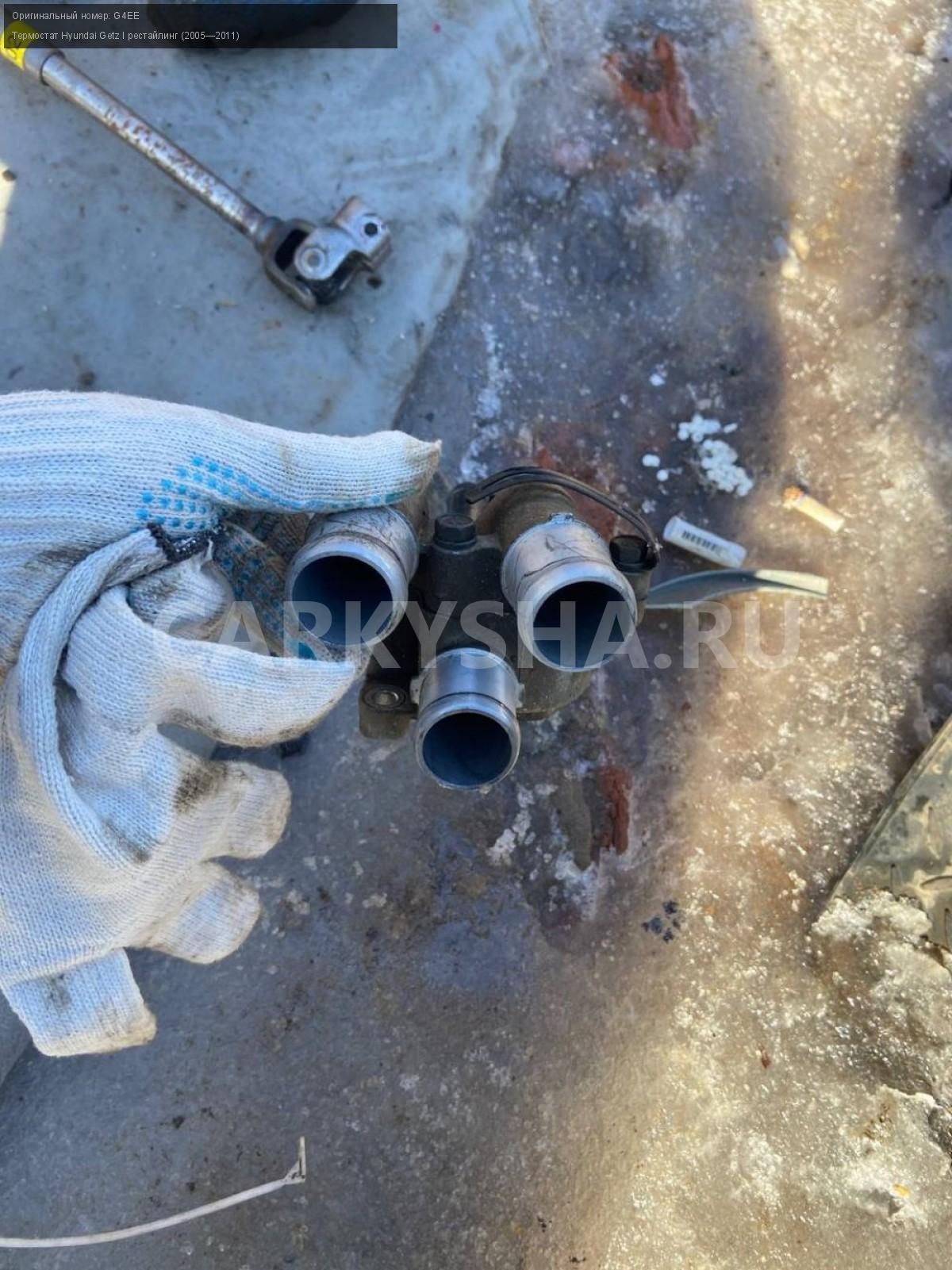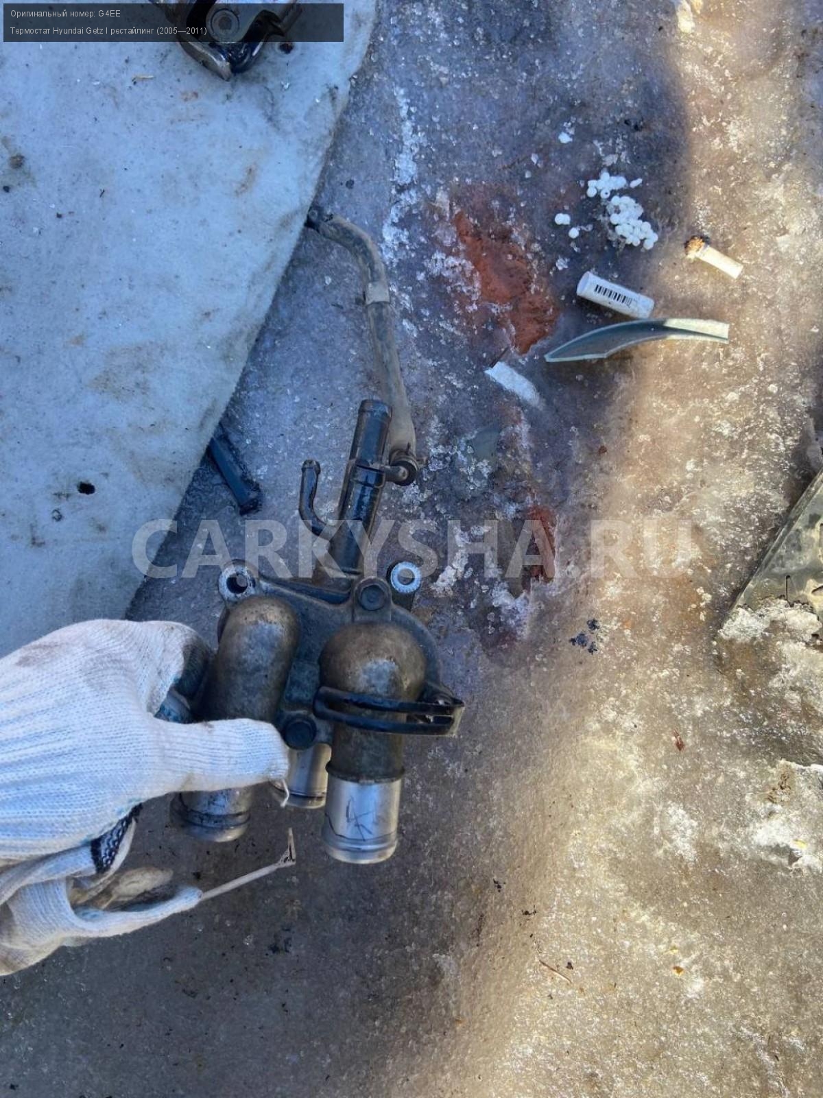 Hyundai Getz, 1.4, термостат в сборе.\nАртикул: 4523\n\nОриг. номер: G4EE\nПроизводитель: Hyundai-KIA\nПримечание:Хендай Гетц, 1.4, термостат в сборе, бу. \n\nМарка: Hyundai\nМодель: Getz I рестайлинг (2005—2011)\nГод выпуска: 2007\nКузов тип: Хетчбэк\nДвигатель номер: G4EE\nМодель двигателя: инжектор\nОбъем: 1.4\nТопливо: Бензин\nКоробка: Механика\nЦвет: Красный\nСовместимости: Hyundai Getz I рестайлинг (2005—2011) 1.4 MT (97 л.с.)\nСовместимость: