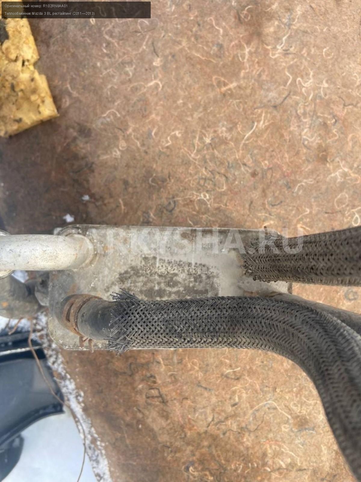 Mazda 3 BL, теплообменник.\nАртикул: 4404\n\nОриг. номер: R102RN8AA01\nПроизводитель: MAZDA\nПримечание:Мазда 3 BL, теплообменник, бу. \n\nМарка: Mazda\nМодель: 3 BL рестайлинг (2011—2013)\nГод выпуска: 2012\nКузов тип: Седан\nДвигатель номер: Z6\nМодель двигателя: инжектор\nОбъем: 1.6\nТопливо: Бензин\nКоробка: Автомат\nЦвет: Темно-Сервй\nСовместимости: Mazda 3 BL рестайлинг (2011—2013) 1.6 AT (105 л.с.)\nСовместимость: