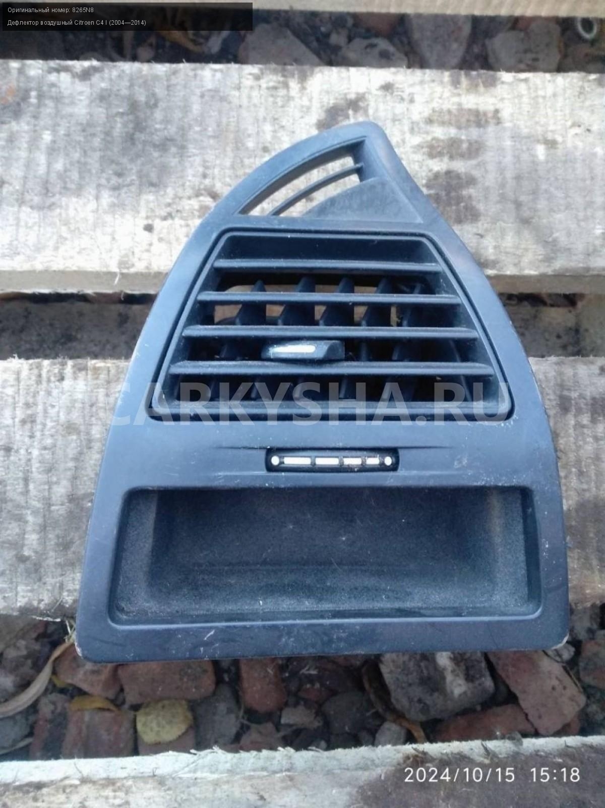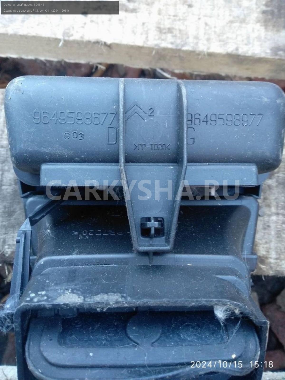 Citroen C4, дефлектор воздушный пара.\nАртикул: 6017\n\nОриг. номер: 8265N8\nПроизводитель: Peugeot-Citroen\nПримечание:Ситроен С4 купе, дефлектор воздушный, цена за пару, б/у. \n\nМарка: Citroen\nМодель: C4 I (2004—2014)\nГод выпуска: 2007\nКузов тип: Купе\nДвигатель номер: TU5JP4\nМодель двигателя: инжектор\nОбъем: 1.6\nТопливо: Бензин\nКоробка: Автомат\nЦвет: Черный\nПраво/Лево: Право/Лево\nСовместимости: Citroen C4 I (2004—2014) 1.6 AT (109 л.с.)\nСовместимость: