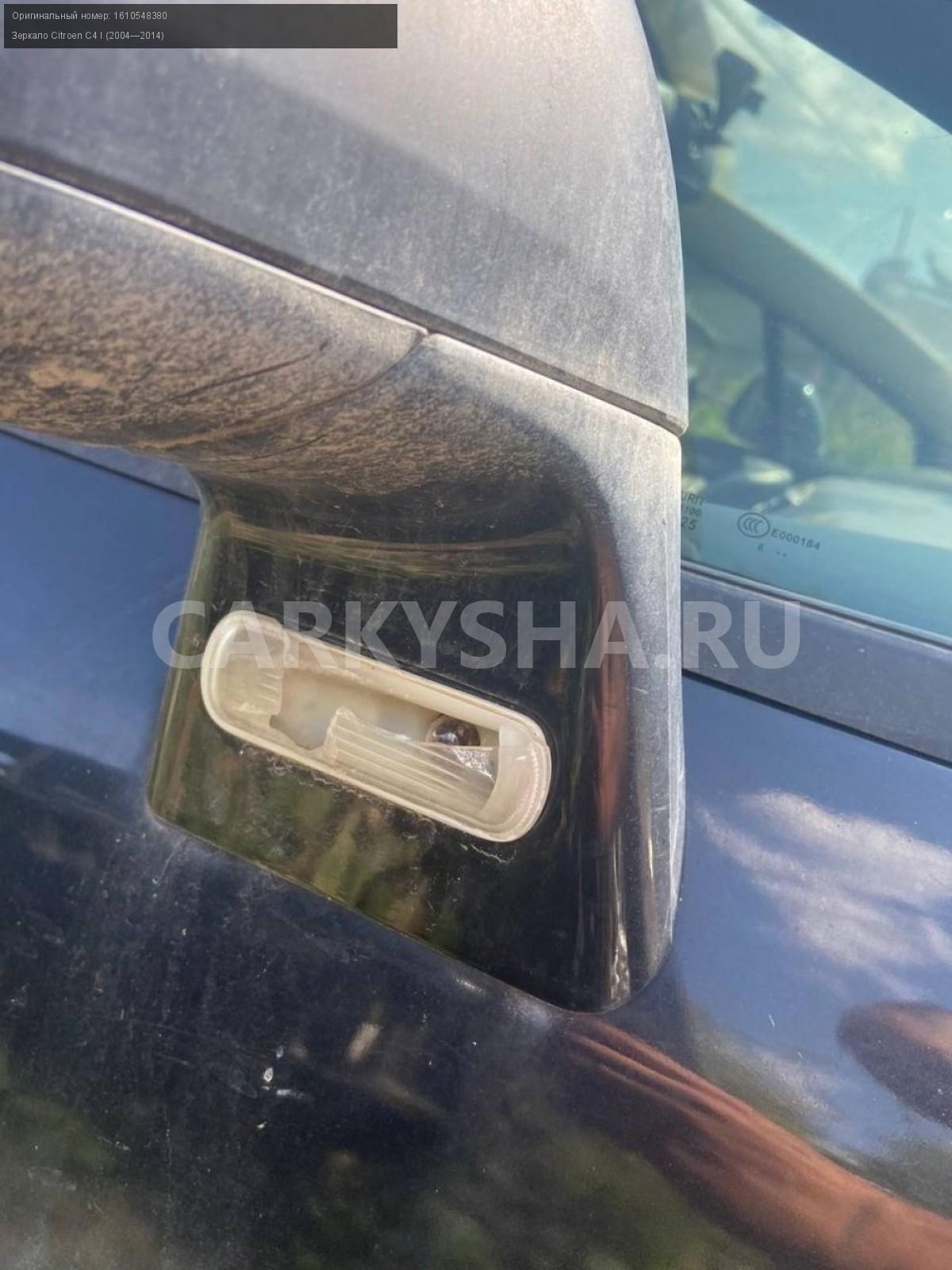 Citroen C4 I , зеркала\nАртикул: 2638\n\nОриг. номер: 1610548380\nПроизводитель: Hyundai-KIA\nПримечание:Ситроен С4, зеркала б/у, цена за пару\n\nМарка: Citroen\nМодель: C4 I (2004—2014)\nГод выпуска: 2007\nКузов тип: Купе\nДвигатель номер: TU5JP4\nМодель двигателя: инжектор\nОбъем: 1.6\nТопливо: Бензин\nКоробка: Автомат\nЦвет: Черный\nПраво/Лево: Право/Лево\nСовместимости: Citroen C4 I (2004—2014) 1.6 AT (109 л.с.)\nСовместимость:
