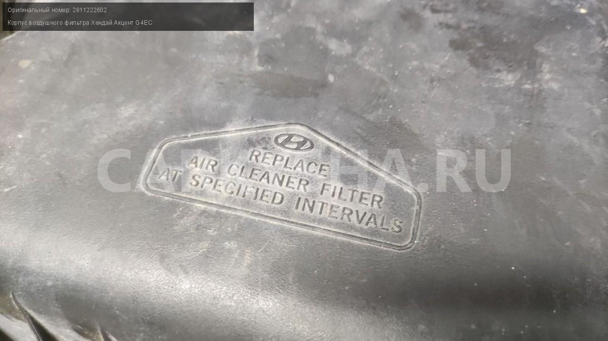 Примечание:Продам корпус воздушного фильтра, нет 2х скобок. Подойдет на Hyundai Accent (Хёндэ Аксент, Хендай Акцент) 2008 года, с двигателем G4EC 1.5л. 16V