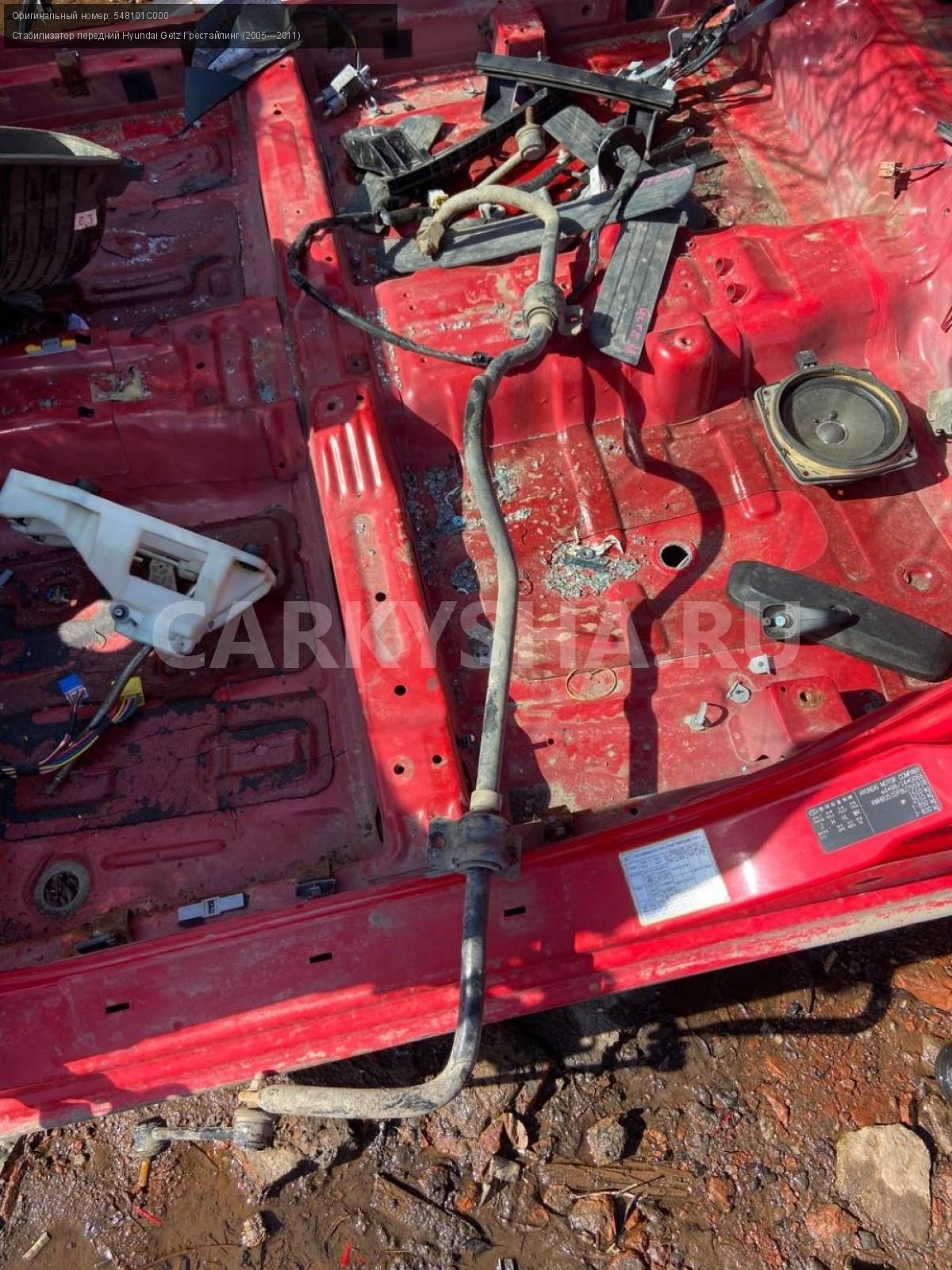 Hyundai Getz I рестайлинг, стабилизатор передний.\nАртикул: 4630\n\nОриг. номер: 548101C000\nПроизводитель: Hyundai-KIA\nПримечание:Хендай Гетц рестайлинг, стабилизатор передний , бу. \n\nМарка: Hyundai\nМодель: Getz I рестайлинг (2005—2011)\nГод выпуска: 2007\nКузов тип: Хетчбэк\nДвигатель номер: G4EE\nМодель двигателя: инжектор\nОбъем: 1.4\nТопливо: Бензин\nКоробка: Механика\nЦвет: Красный\nПеред/Зад: Перед\nСовместимости: Hyundai Getz I рестайлинг (2005—2011) 1.4 MT (97 л.с.)\nСовместимость: