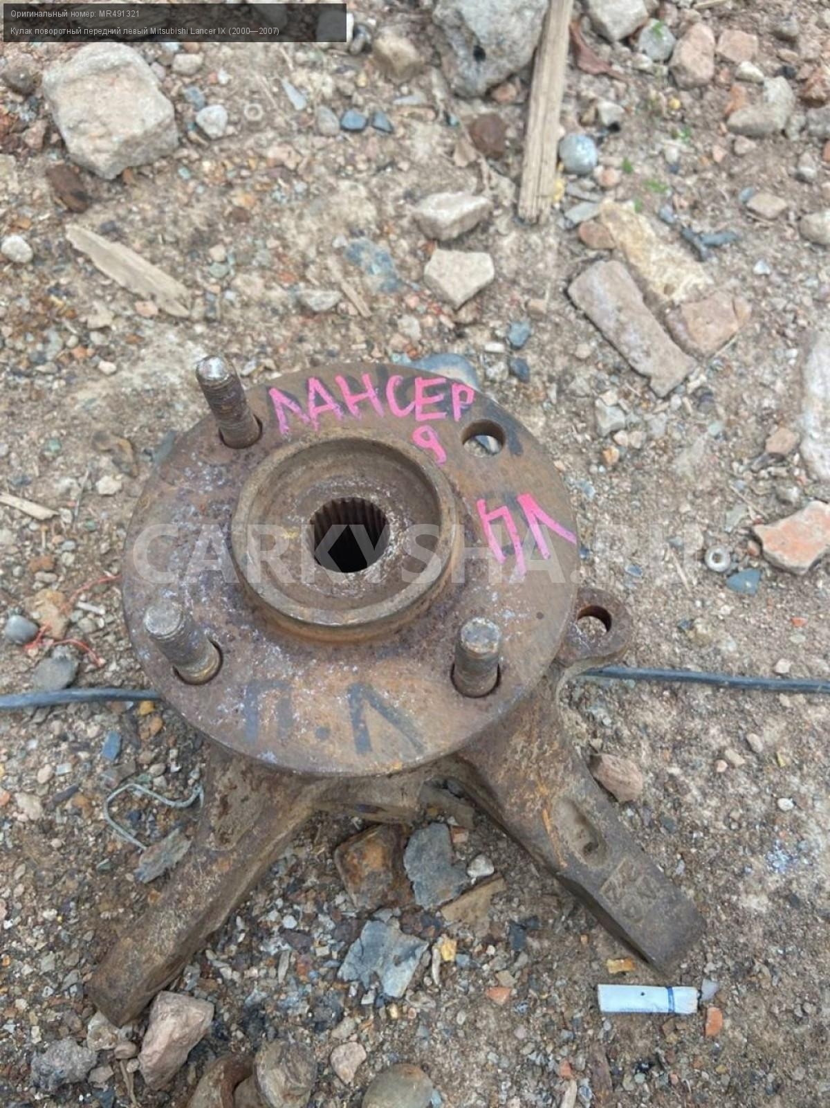 Mitsubishi Lancer IX, кулак передний левый\nАртикул: 3097\n\nОриг. номер: MR491321\nПроизводитель: MITSUBISHI\nПримечание:Митсубиси Лансер 9, кулак поворотный передний левый, б/у\n\nМарка: Mitsubishi\nМодель: Lancer IX (2000—2007)\nПраво/Лево: Лево\nПеред/Зад: Перед\nСовместимости: Mitsubishi Lancer IX (2000—2007)\nСовместимость: