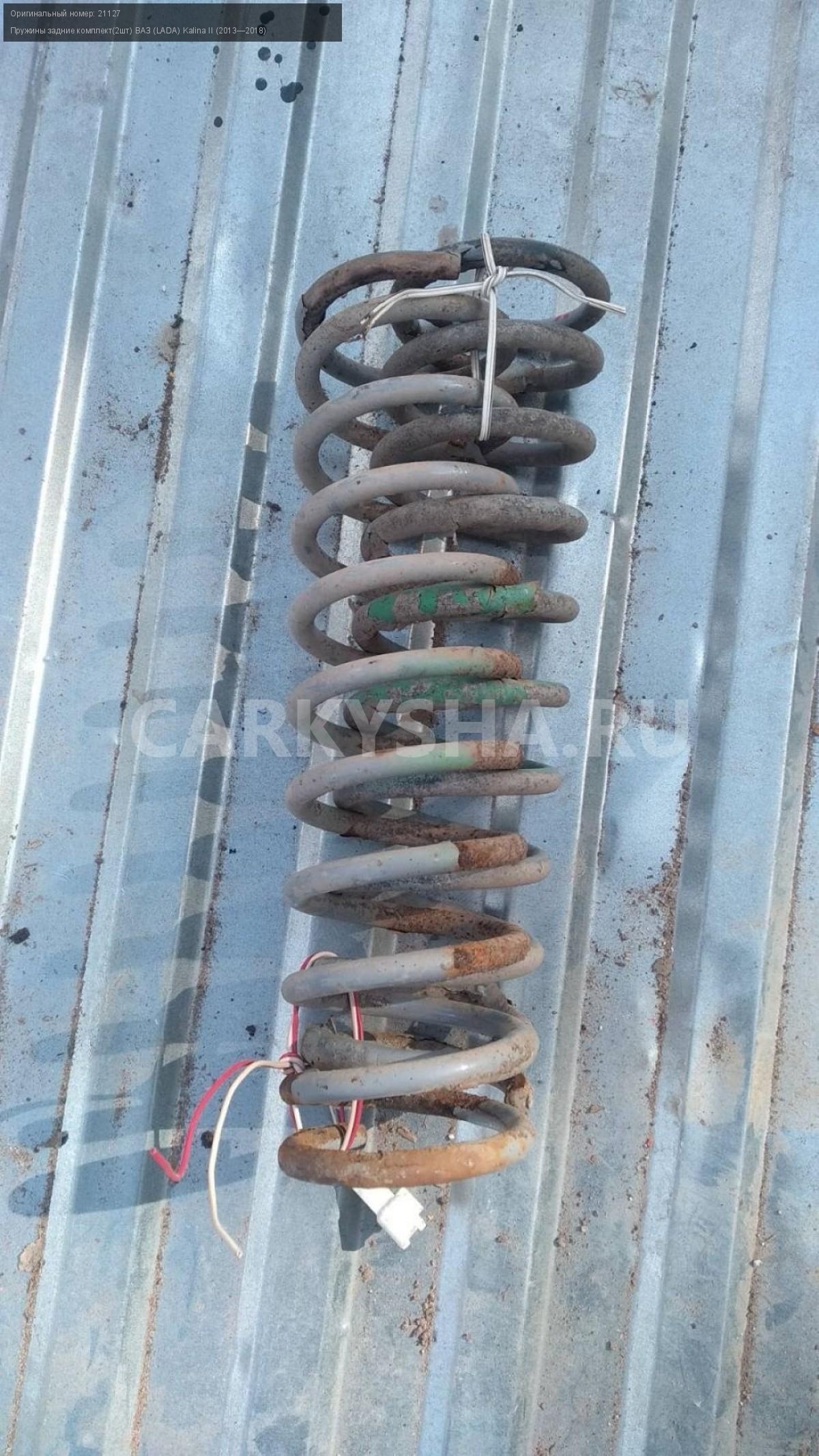 Лада Калина 2 пружины задние\nАртикул: 2624\n\nОриг. номер: 21127\nПроизводитель: АвтоВАЗ\nПримечание:Лада Калина 2 универсал пружины задние бу, цена указана за пару\n\nМарка: ВАЗ (LADA)\nМодель: Kalina II (2013—2018)\nГод выпуска: 2016\nКузов тип: Универсал\nДвигатель номер: 11186\nМодель двигателя: инжектор\nОбъем: 1.6\nТопливо: Бензин\nКоробка: Механика\nЦвет: Черный\nПраво/Лево: Право/Лево\nПеред/Зад: Зад\nСовместимости: ВАЗ (LADA) Kalina II (2013—2018) 1.6 MT (87 л.с.)\nСовместимость: