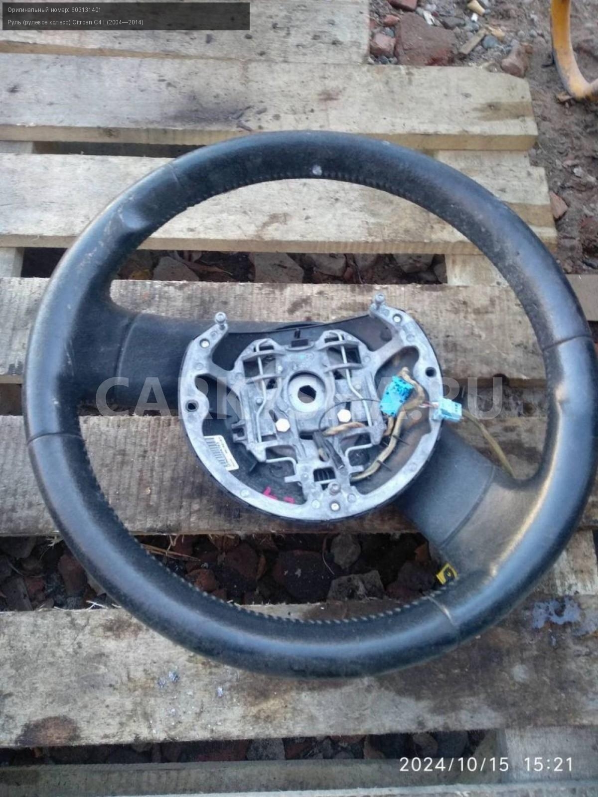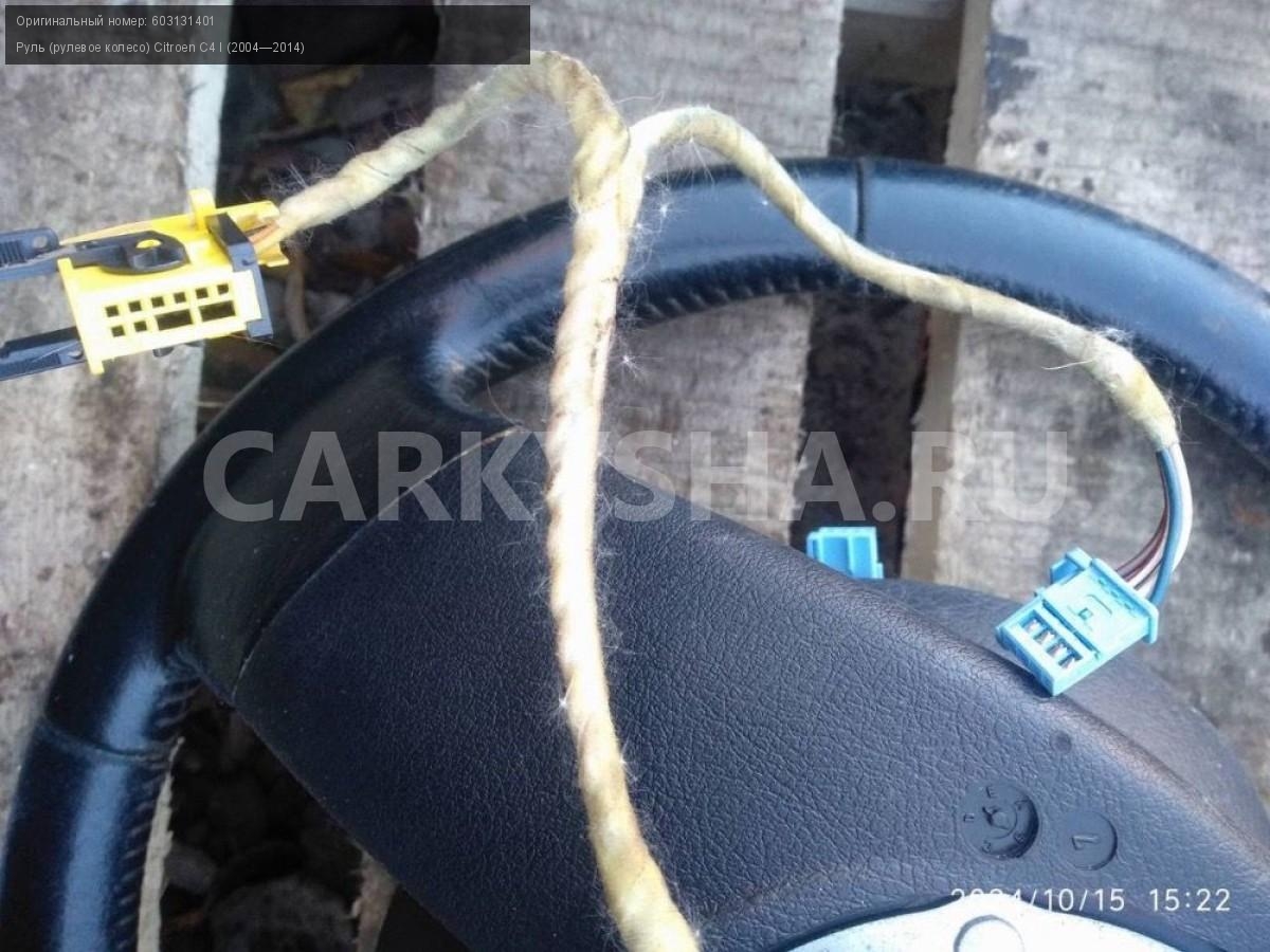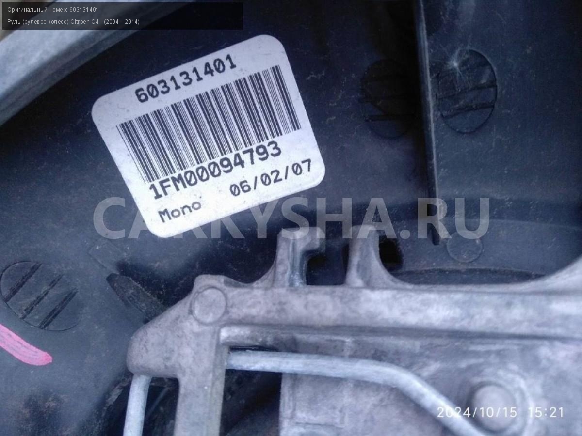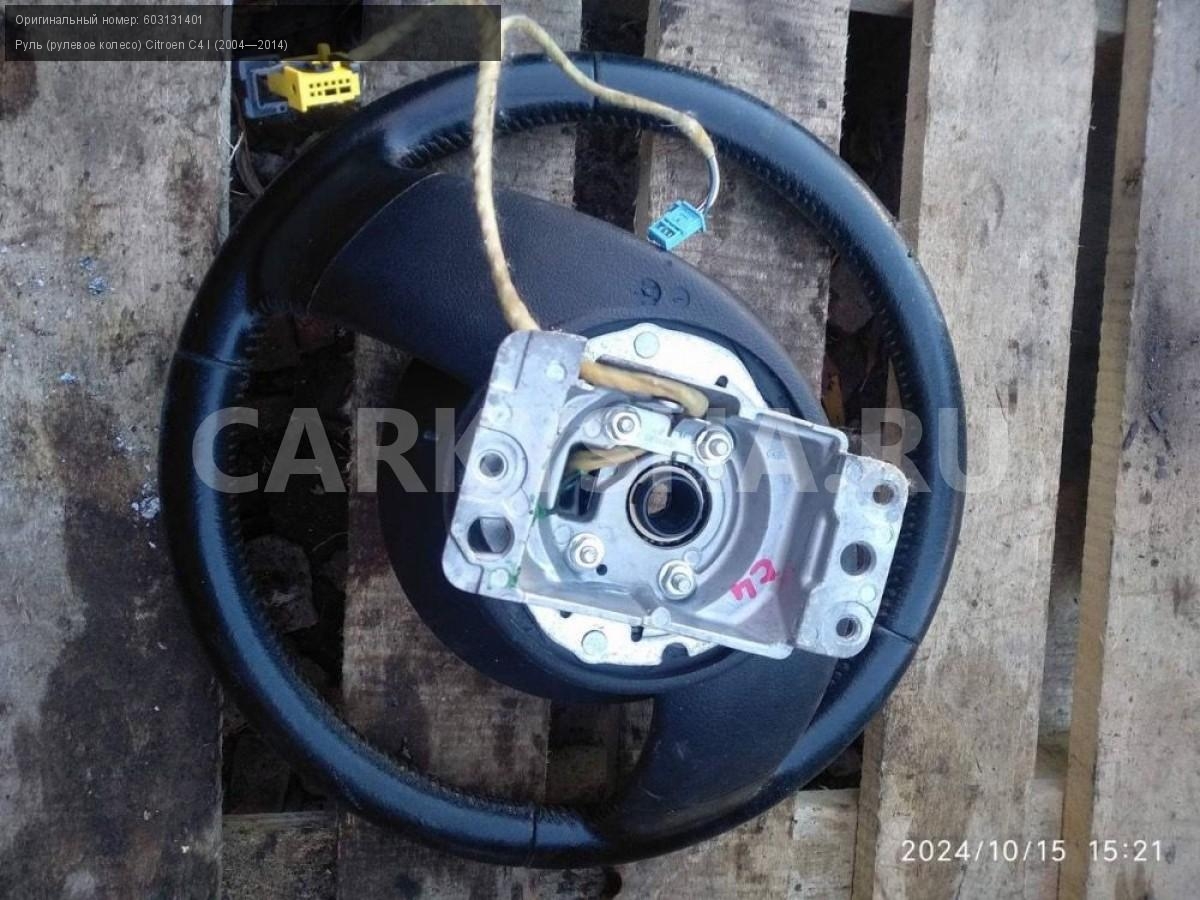 Citroen C4, купе, руль, рулевое колесо.\nАртикул: 6008\n\nОриг. номер: 603131401\nПроизводитель: Peugeot-Citroen\nПримечание:Ситроен С4 купе, руль ( рулевое колесо) , б/у. \n\nМарка: Citroen\nМодель: C4 I (2004—2014)\nГод выпуска: 2007\nКузов тип: Купе\nДвигатель номер: TU5JP4\nМодель двигателя: инжектор\nОбъем: 1.6\nТопливо: Бензин\nКоробка: Автомат\nЦвет: Черный\nСовместимости: Citroen C4 I (2004—2014) 1.6 AT (109 л.с.)\nСовместимость: